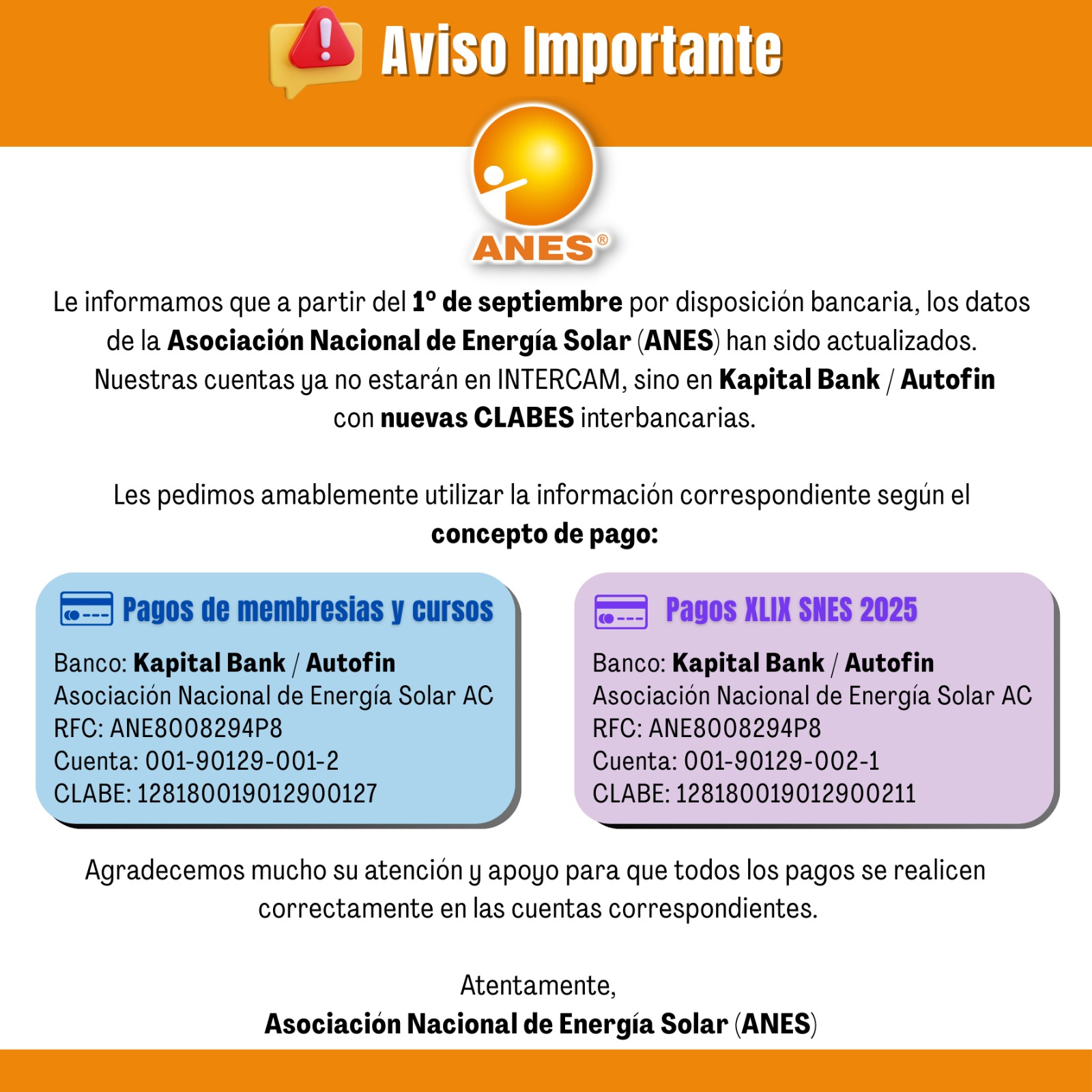 La Asociación celebra cada año, durante la primera semana de octubre, su reunión anual denominada Reunión Nacional de Energía Solar, y tradicionalmente se organiza con el patrocinio de Instituciones de Educación Superior en el interior de la República. La relación de eventos es la siguiente: